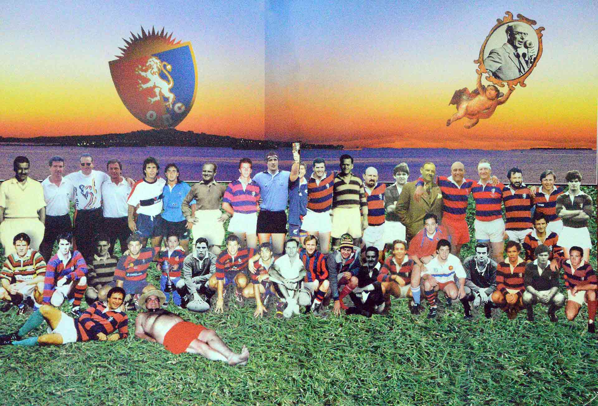 Con Gabriel Varela fuimos a encargarle el cuadro a su casa. Llevamos una cantidad de fotos de equipos de rugby de todas las épocas que descolgamos de las paredes del Club.